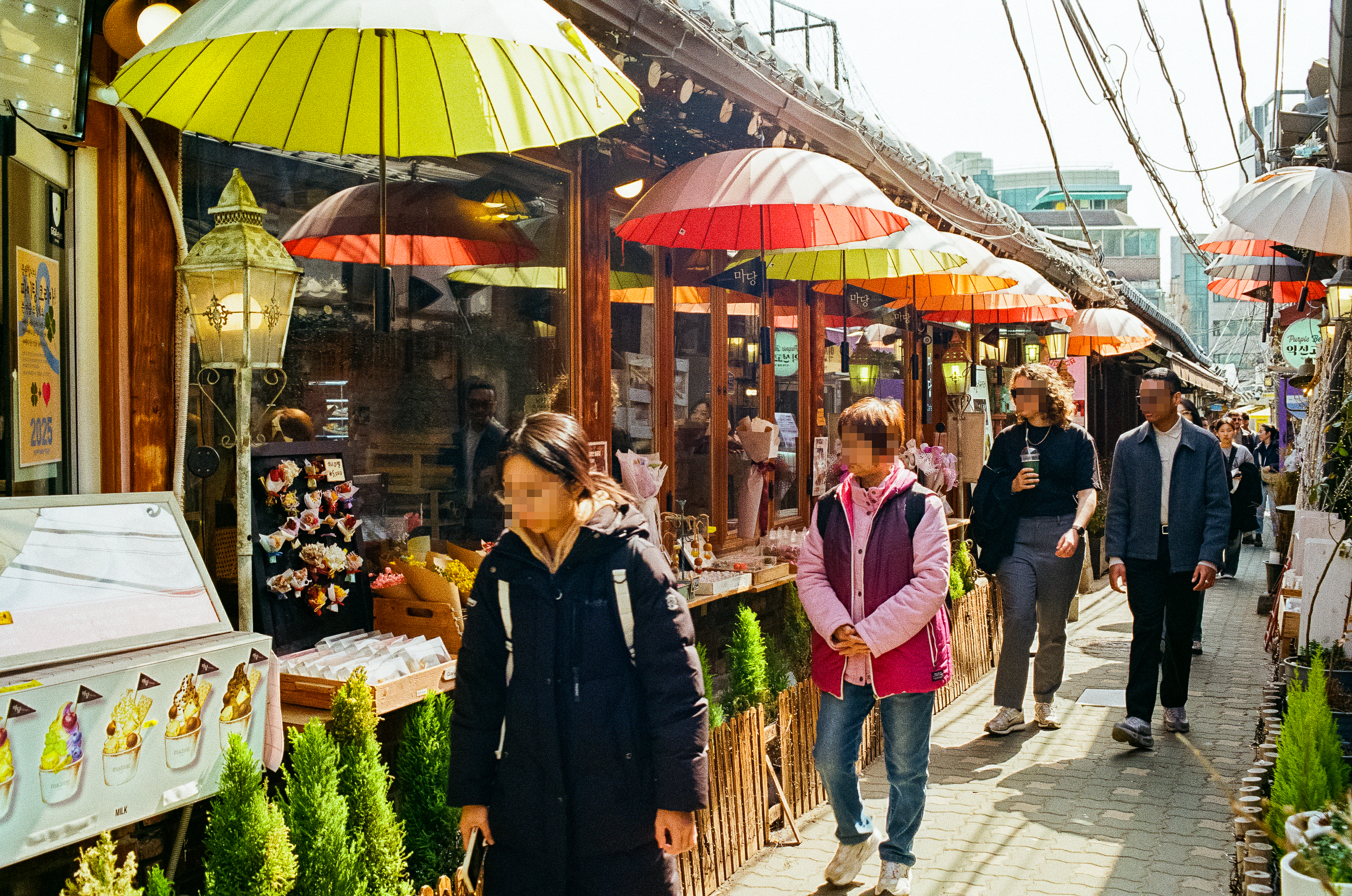 3월 중순 옅은 미세먼지 사이로 봄날의 햋살이 비추는 날 익선동에 갔다. 가벼운 자동 카메라인 F80s와 35-70mm 줌렌즈를 들고 나가니 걸음이 한결 가볍다. 필름은 후지 C200을 사용했다.