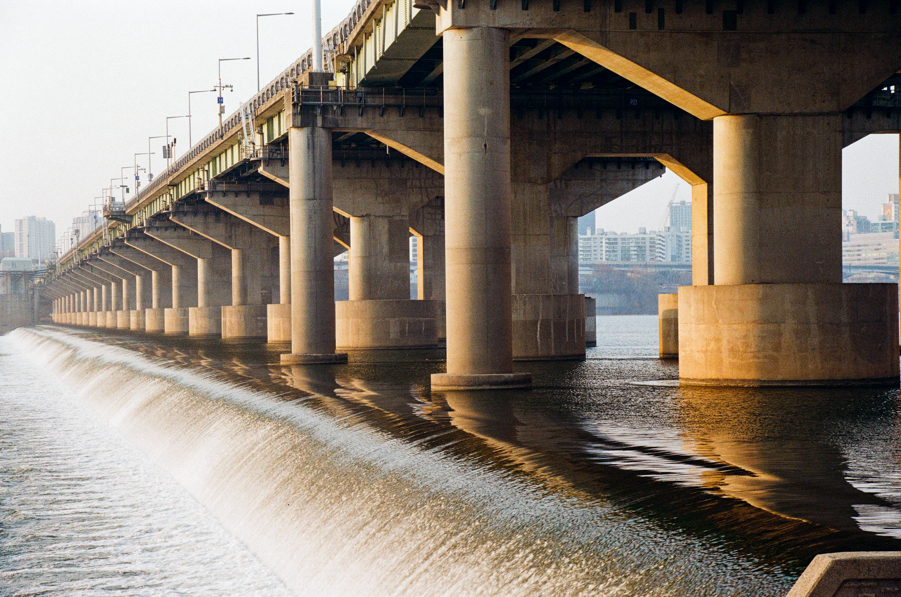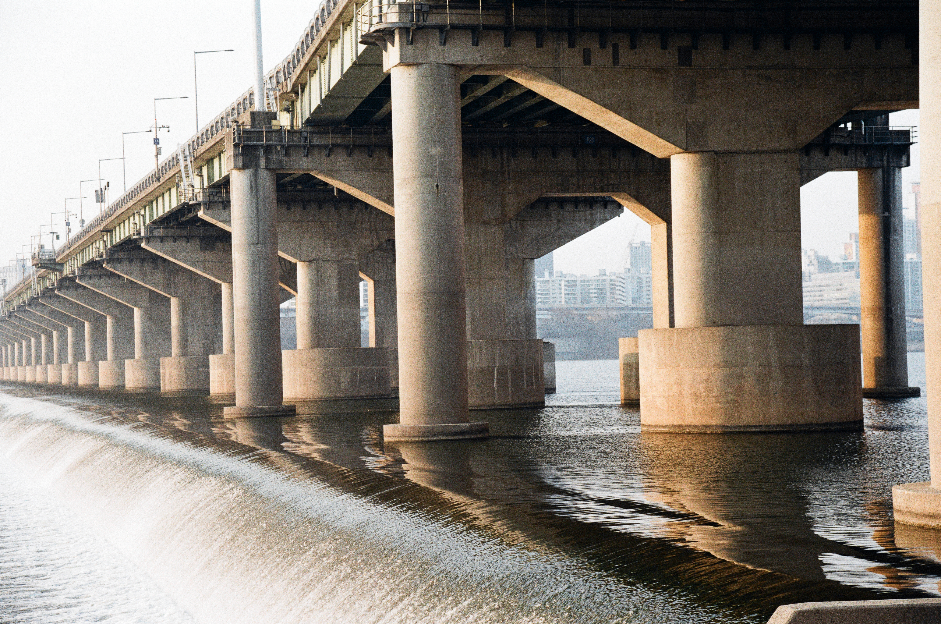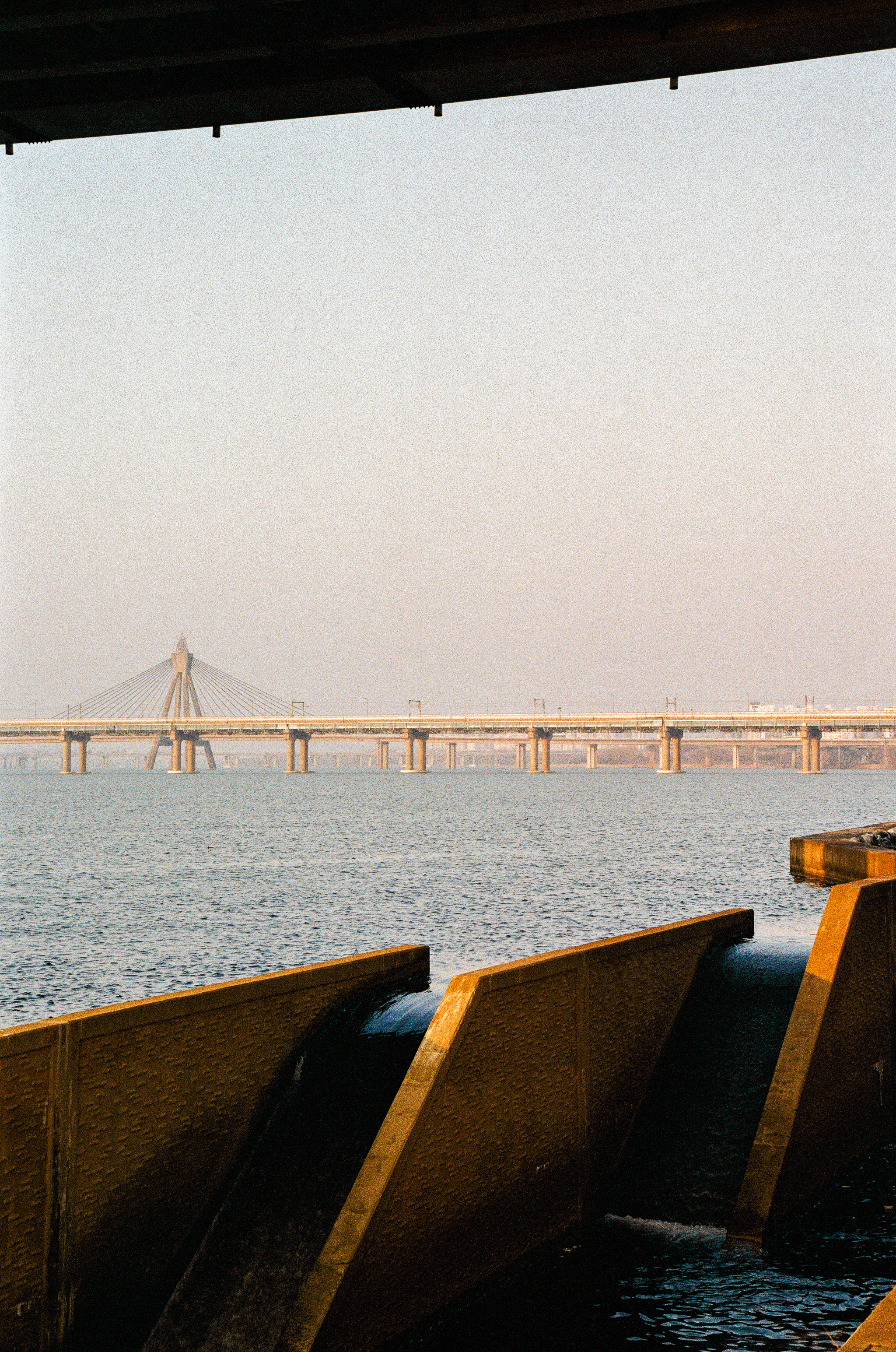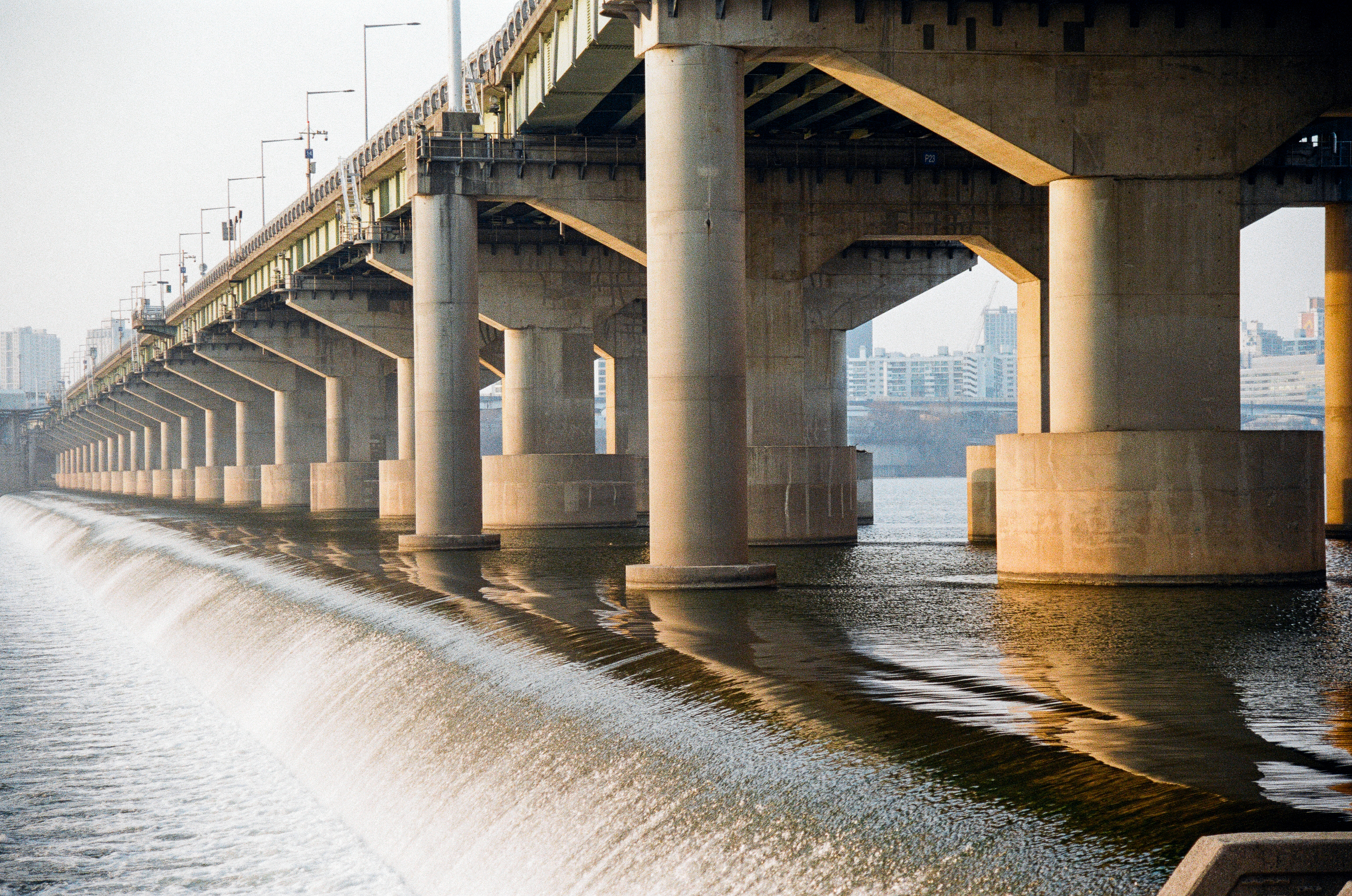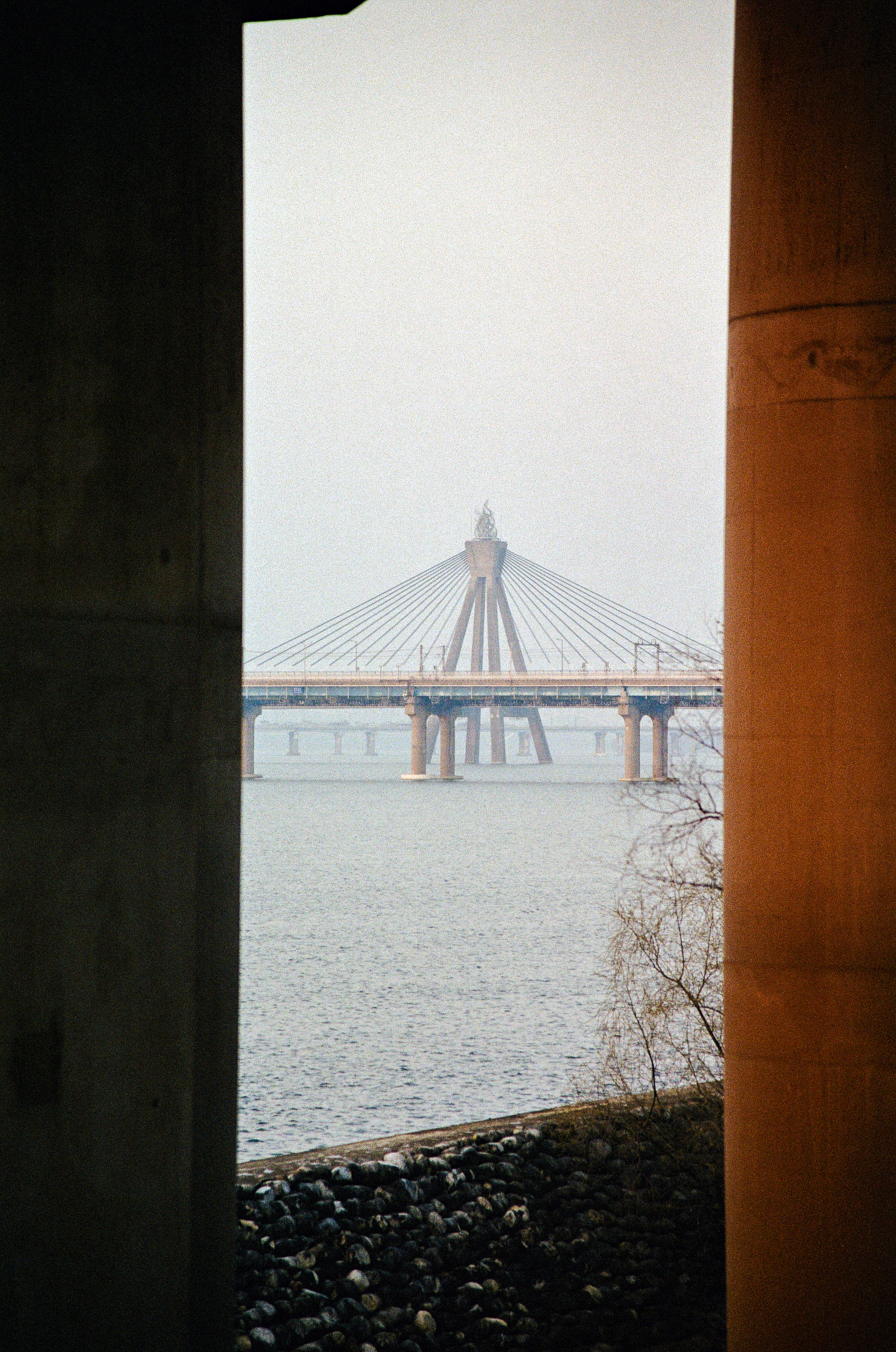 첫째는 수동 카메라를 들고 왔어야 한다. 워낙 미세먼지가 심했던 날이기도 하지만 노을빛이 떨어지는 다리 기둥의 모습과 뒤에 보이는 철교의 모습이 조화롭지가 못하다, 초점과 노출의 의도적 사진을 위해 수동 카메라를 들고 와야겠다.